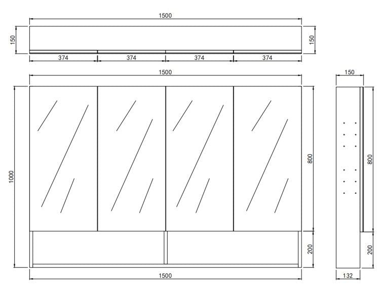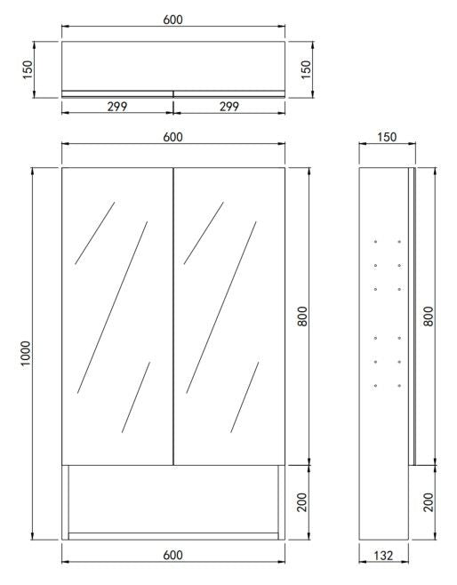 - Size W 600, 750, 900, 1200, 1500mm x H1000mm x D152mm
