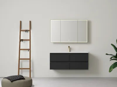 The Hamilton Slim Matte Black Vanity by Lukka delivers sophisticated Hamptons-inspired aesthetics while maintaining a streamlined profile. Its thoughtfully designed drawer configuration maximizes storage capacity with 460mm depth, making it an ideal solution for contemporary bathroom spaces requiring both style and functionality.